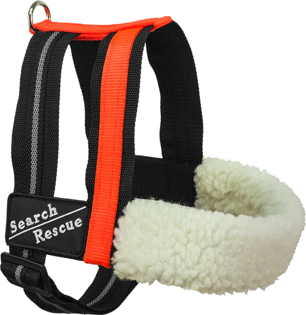 Our H-Style Search and Rescue Harness is made from thick 2” wide webbing. Highly visible blaze orange web and reflective tape cover both sides of the harness to provide optimal visibility during day and night time hours.