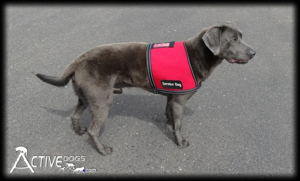 This Service Dog Vest is fashioned in a traditional cape style vest for quick and easy use. These vests are still made with the highest quality materials and consist of two layers of weather resistant 1000 denier nylon/urethane coated fabric offered in 13 different colors. The borders of the vest are bound with reflective webbing for added visibility, strength, and durability. The vest fits over the dog’s head and attaches with a quick release buckle underneath the legs. Both the chest and girth straps are adjustable to give your dog the perfect fit.
