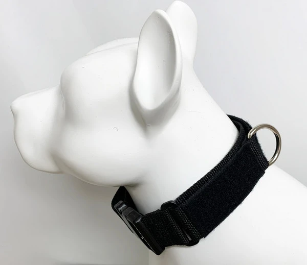 A martingale style collar is one that when you pull on the D-ring the collar will become tighter on the dog. This is a good collar for working the dog in public when you may need a little more control or when training the dog.