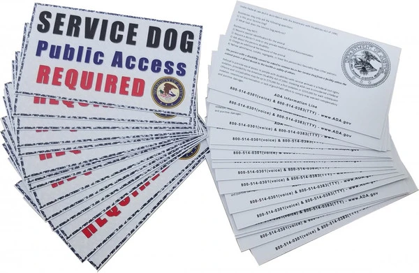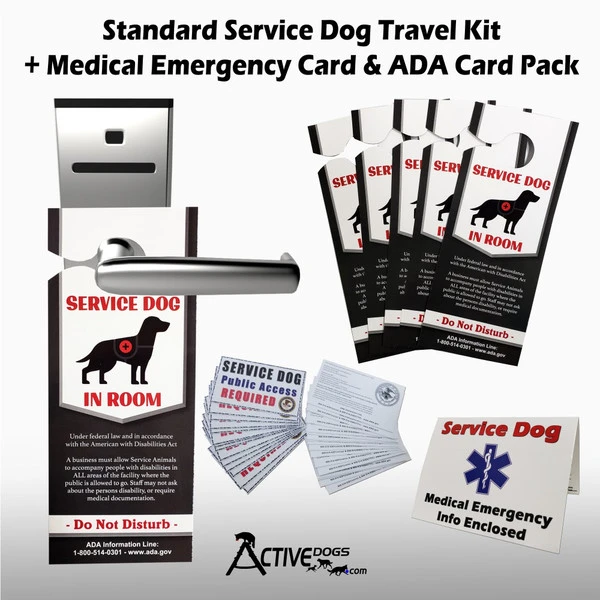Our Standard Service Dog Travel Kit is a great way to display you have a Service Dog traveling with you. This kit comes with door hangers for your hotel room, ADA access cards & a medical emergency information card.