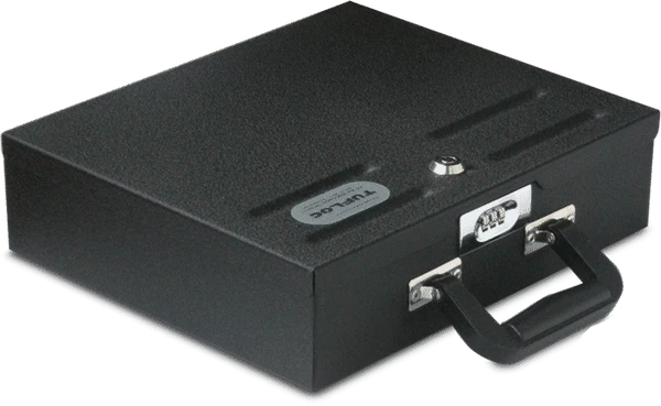 Tufloc Briefcase Storage Boxes are the best way to store you handgun and valuables safely and securely while you are on the go. Fully padded interior to protect contents if dropped or misused. Constructed of heavy-gauge, powder-coated steel. Comes with either a standard combination lock or a Medeco® combination lock with key lock override.