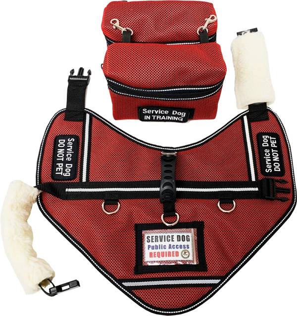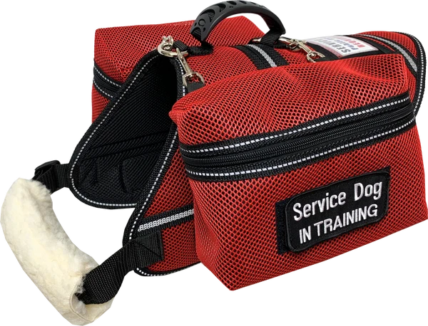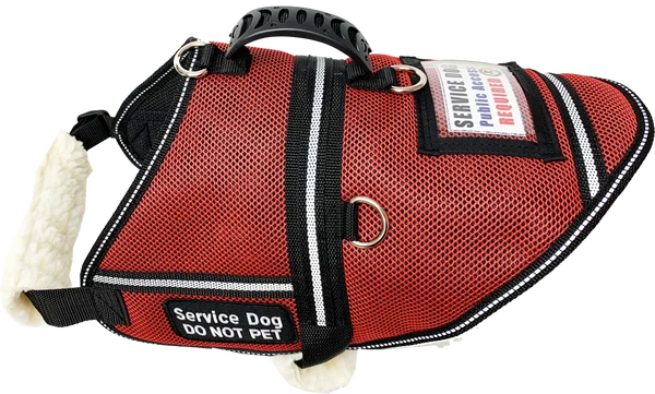 The vest is padded, lined and all the seams are cover bound. It comes with 4 standard patches of your choice. This vest also works well with the 3 snap reflective pulling leash – which is helpful for those with a wheelchair (leash item number is 707551PL).